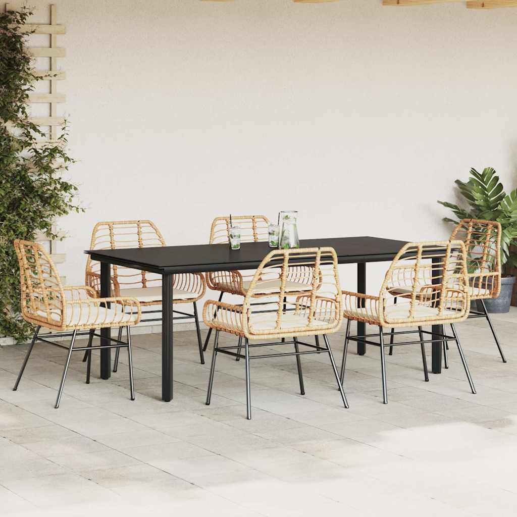 vidaXL Σετ Τραπεζαρίας Κήπου 7 τεμ. Καφέ Συνθ. Ρατάν / Γυαλί Μαξιλάρια