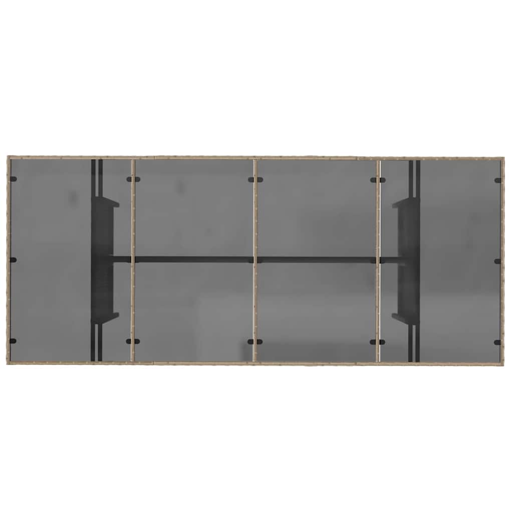 Αυτό το σετ τραπεζαρίας κήπου είναι μια ωραία συνεισφορά στο μοντέρνο στυλ και στην πρακτικότητα, τέλειο για γεύματα σε εξωτερικούς χώρους. Ο στυλάτος μπεζ πολυ ρατάν και η κομψή μαύρη γυάλινη επιφάνεια δίνουν μια όμορφη αίσθηση σε κάθε βεράντα ή μπαλκόνι.
