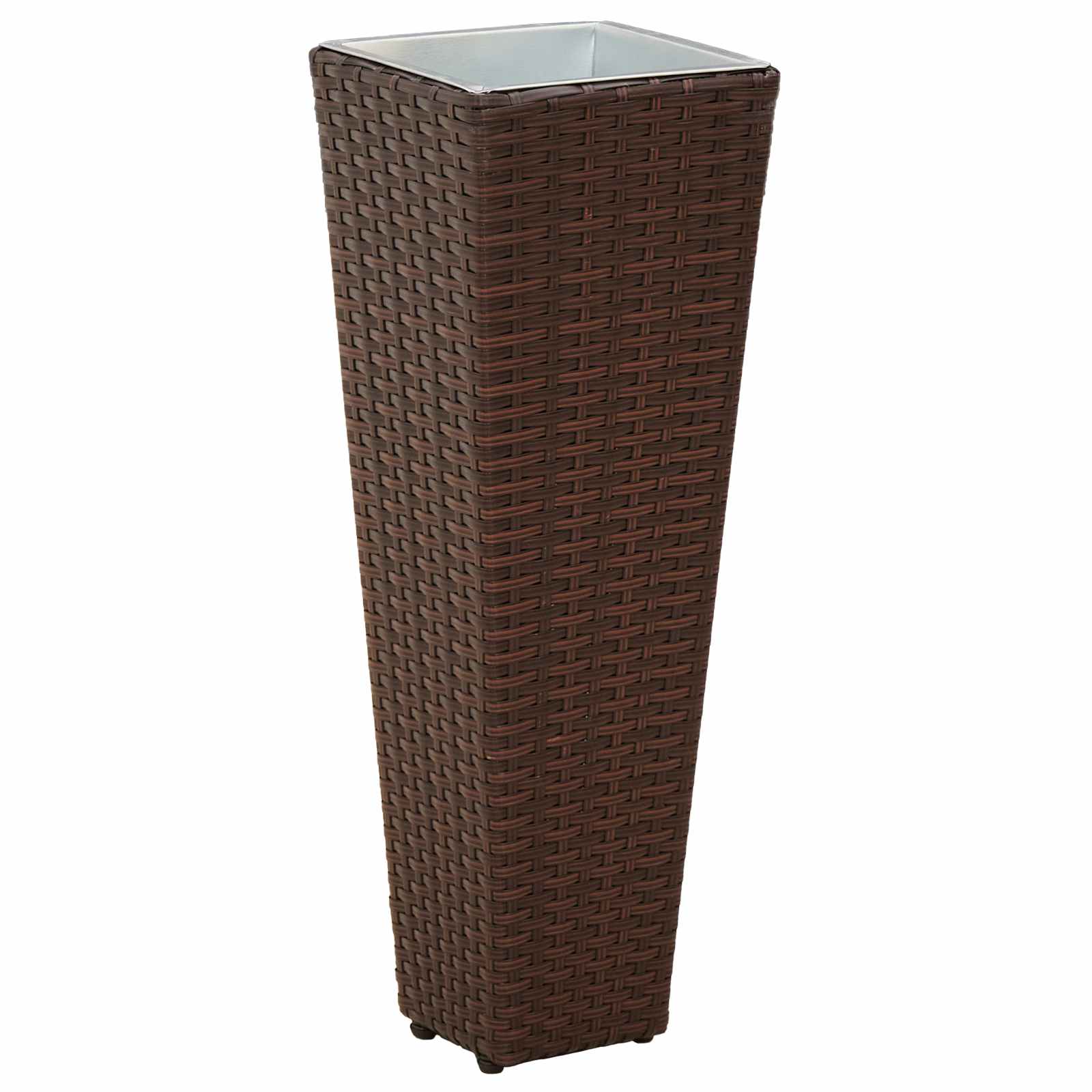 Αυτό το ψηλό σετ είναι τέλειο για να προσθέσει μία κομψή πινελιά στον κήπο ή την ταράτσα σας. Συνδυάζει μοντέρνο στυλ και λειτουργικότητα, με το κομψό τραπεζοειδές σχήμα και το σχέδιο καλαθοπλεκτικής να προσφέρει μία μίνιμαλ αλλά εντυπωσιακή εμφάνιση. Είναι ιδανικό για όποιον θέλει να δώσει μία φρέσκια αίσθηση στον εξωτερικό του χώρο.