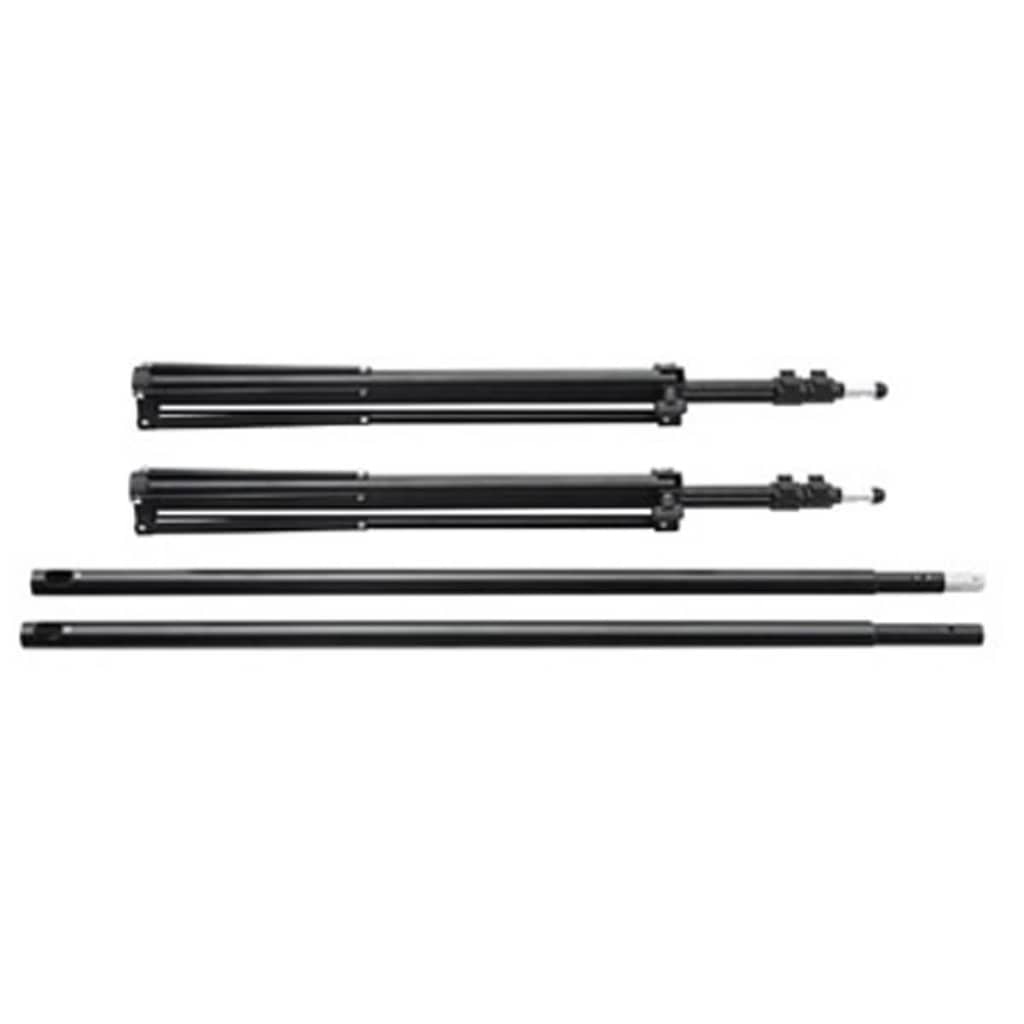Το ελαφρύ σύστημα φόντου είναι κατασκευασμένο από αλουμίνιο. Το σετ περιλαμβάνει ένα λευκό φόντο από βαμβάκι, αλλά μπορεί να χρησιμοποιηθεί σε συνδυασμό με φόντα (διαφορετικών χρωμάτων ή υλικών), ακόμη και με χάρτινα ρολά. Το φόντο διαθέτει μέγιστο πλάτος 300 εκ. Επιπλέον, μπορείτε εύκολα να μεταφέρετε το σετ σε διάφορες τοποθεσίες. Συναρμολογείται και αποσυναρμολογείται εύκολα και είναι βολικό στη μεταφορά με την περιλαμβανόμενη τσάντα μεταφοράς διαστάσεων 85 x 15 x 15 εκ. κατά προσέγγιση.
