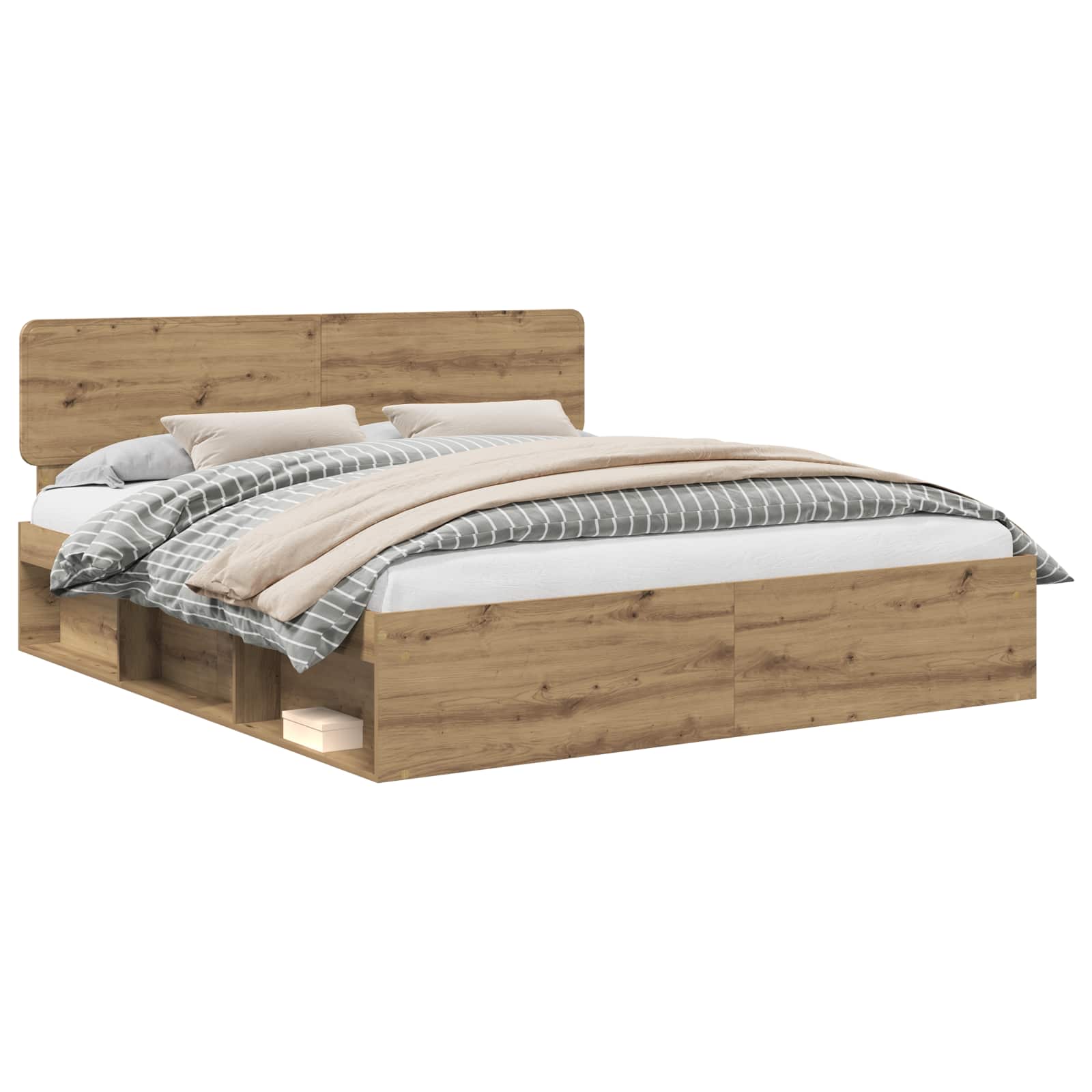 - Επεξεργασμένη αριστεία: Φτιαγμένο από επεξεργασμένο ξύλο, αυτό το πλαίσιο κρεβατιού προσφέρει εξαιρετική σταθερότητα και αντοχή, ιδανικό για διάφορα στρώματα, με ένα κεφαλάρι από μασίφ ξύλο, που προσθέτει μια ζεστή αίσθηση.