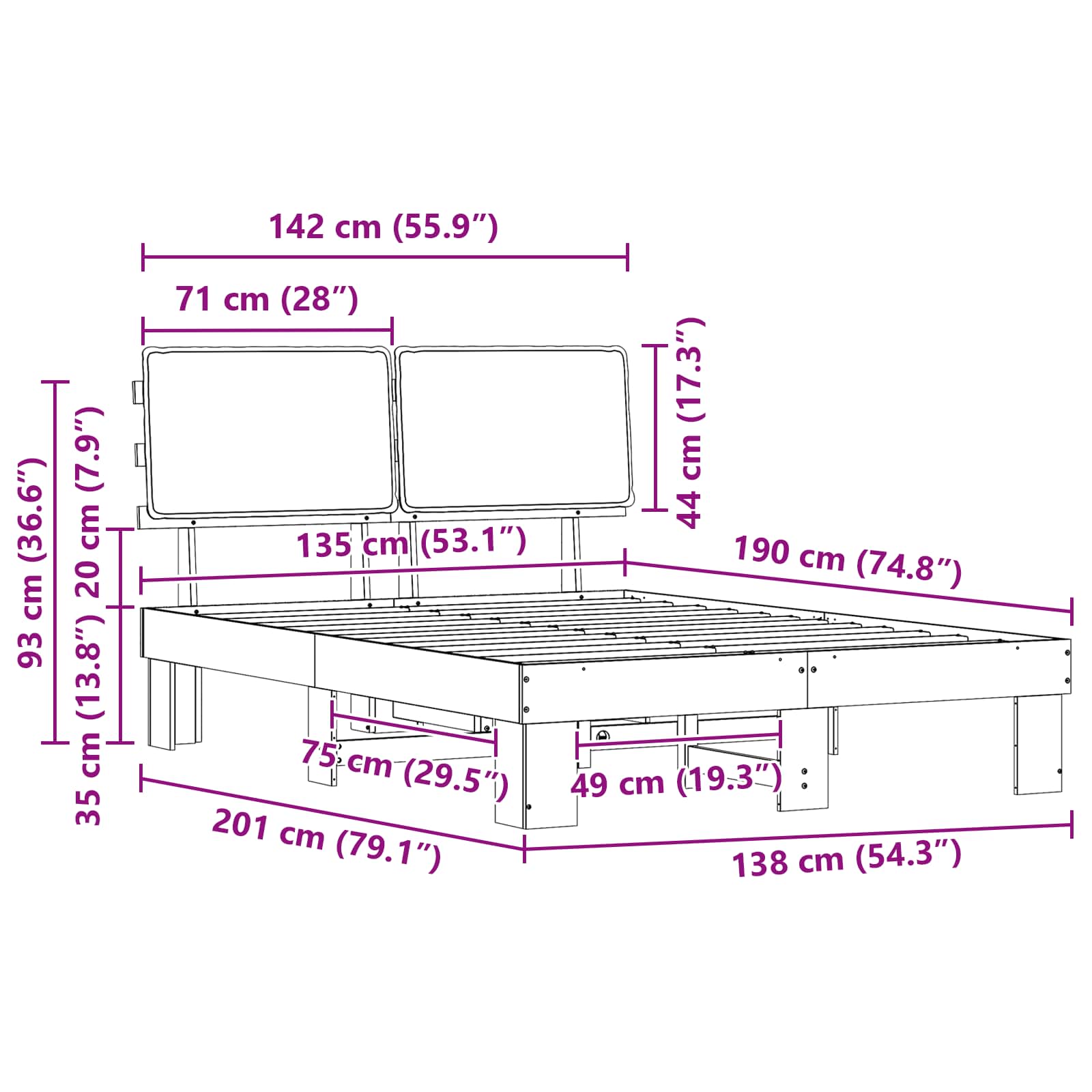 - Εύκολη συναρμολόγηση Χρειάζονται δύο άτομα και ένα κατσαβίδι για τη συναρμολόγηση, με σαφείς οδηγίες για εύκολη εγκατάσταση. Με λίγη προσπάθεια, μπορείτε να απολαύσετε το νέο σας πλαίσιο κρεβατιού. Κάντε απλό σκούπισμα με υγρό πανί για να κρατήσετε το κρεβάτι καθαρό.