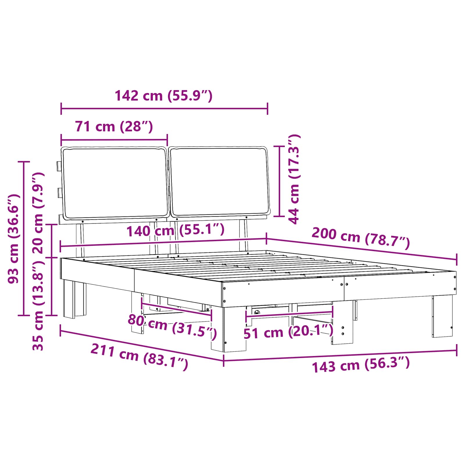 - Μέγεθος στρώματος: Διπλό κρεβάτι (140 εκ x 200 εκ ή 55" x 79")