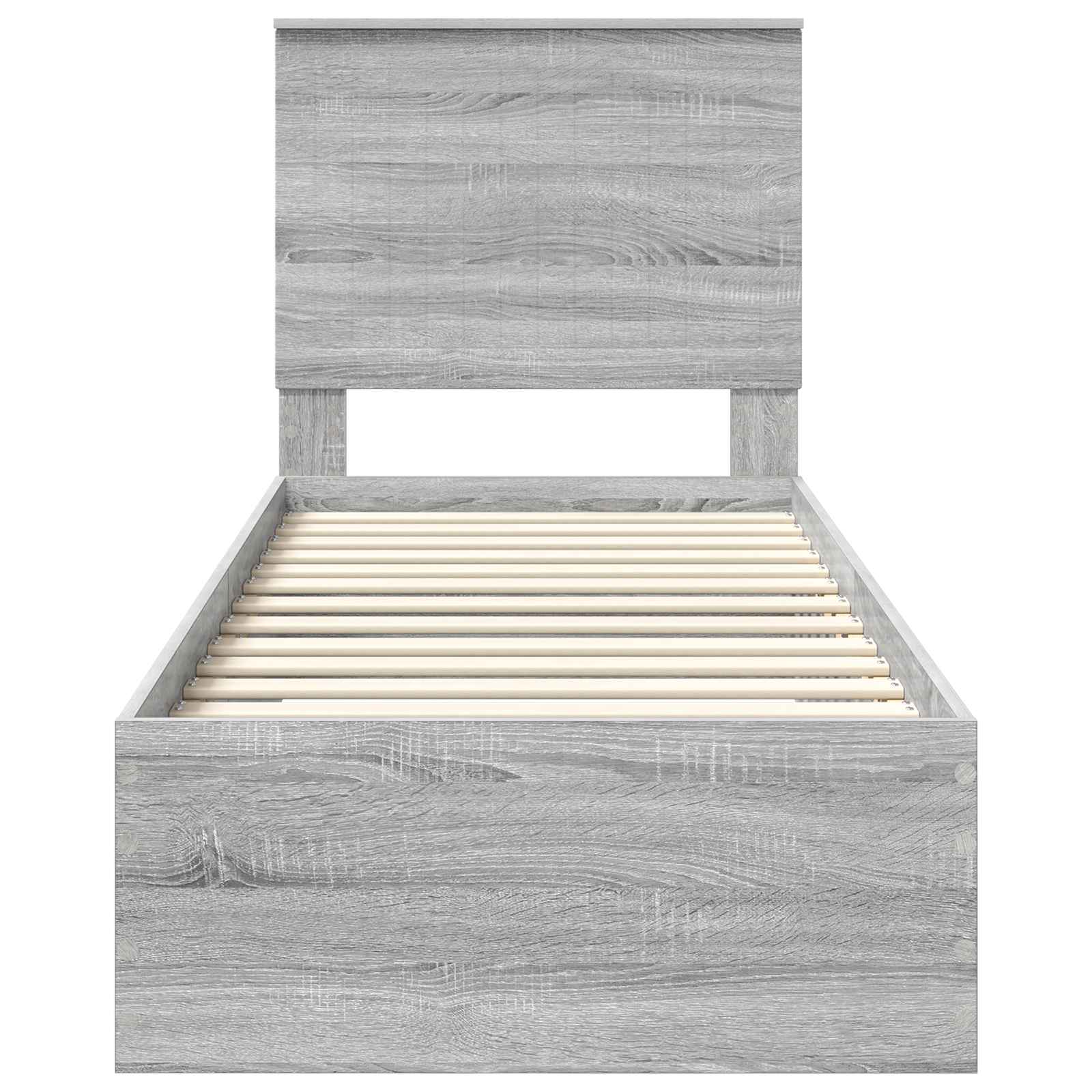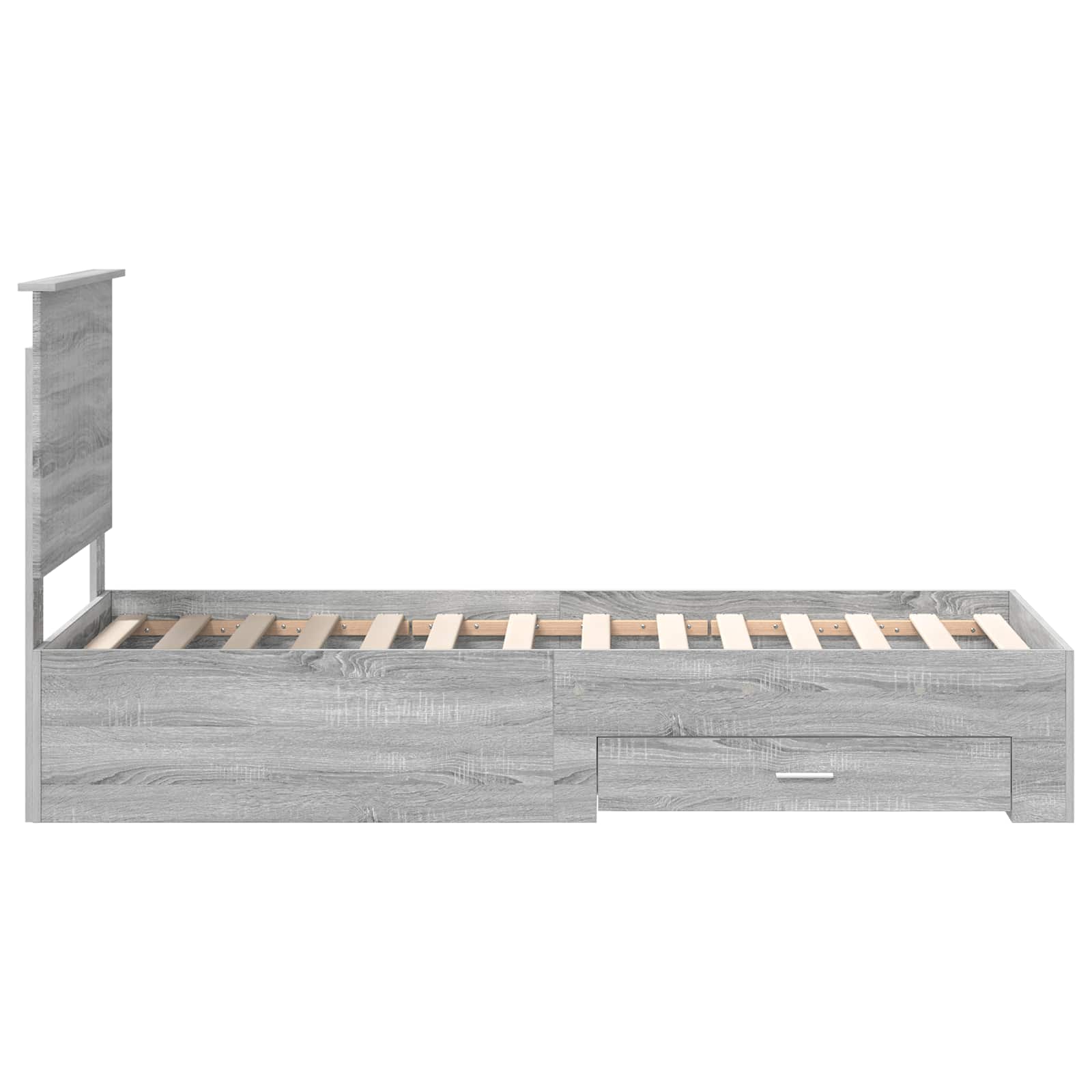 vidaXL Σκελετός Κρεβατιού με συρτάρι Γκρι Σονομά και Ασημί 75 x 190 cm