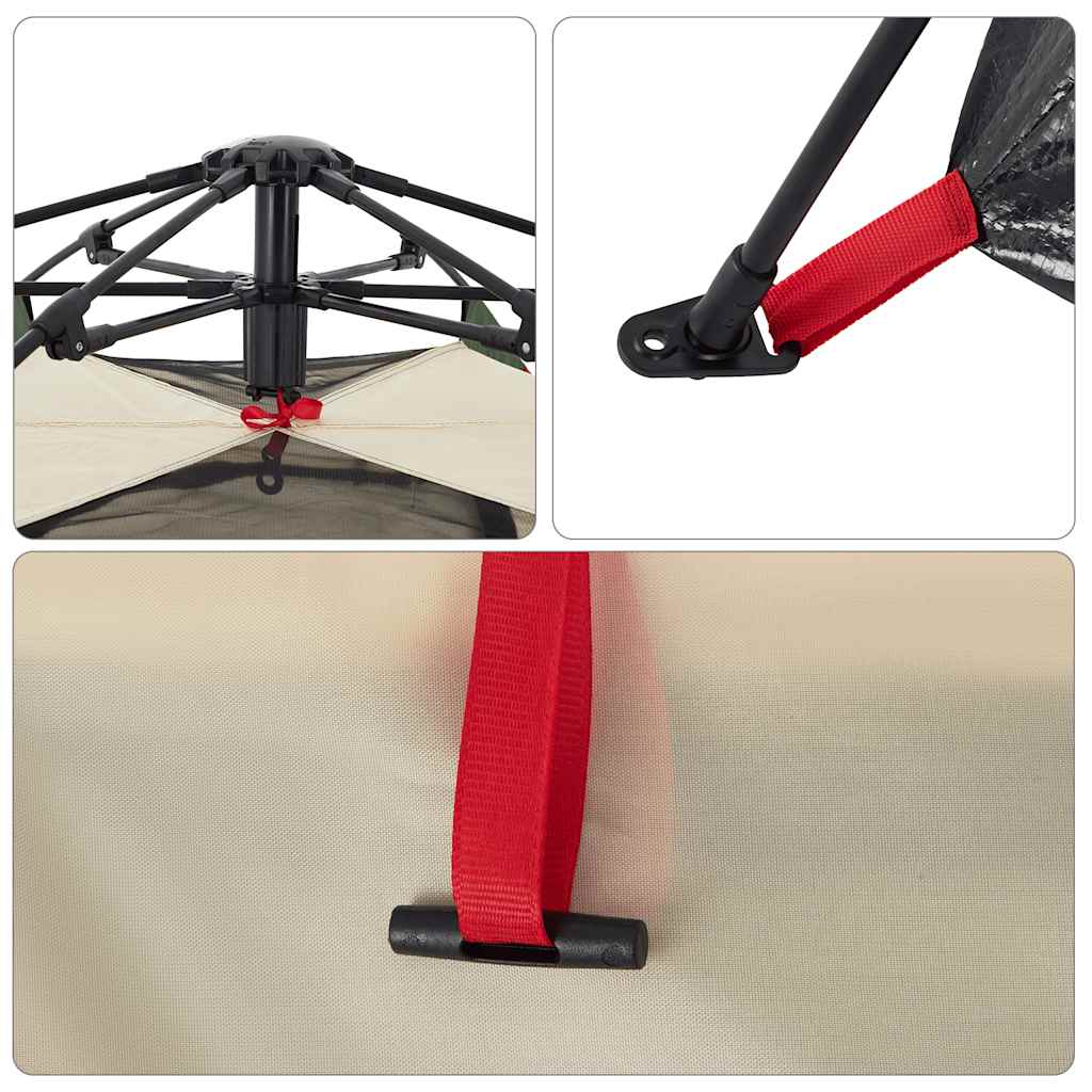 - Σύστημα γρήγορης αποδέσμευσης: Στήστε τη σκηνή χωρίς κόπο με το σύστημα γρήγορης αποδέσμευσης! Τοποθετήστε τη σκηνή κάτω, επεκτείνετε τους προσυναρμολογημένους στύλους μέχρι να ασφαλίσουν στη θέση τους και είστε έτοιμοι!