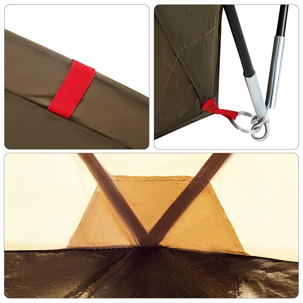 - Ολόπλευρη αδιάβροχη σχεδίαση: Αυτή η σκηνή κάμπινγκ, κατασκευασμένη από πολυεστέρα με επίστρωση PU, είναι αδιάβροχη και ανθεκτική στον αέρα. Οι κολλημένες ραφές αποτρέπουν αποτελεσματικά τη διείσδυση του νερού της βροχής, ενώ το βαρέως τύπου πάτωμα βοηθά στη διατήρηση ενός στεγνού και άνετου εσωτερικού χώρου.