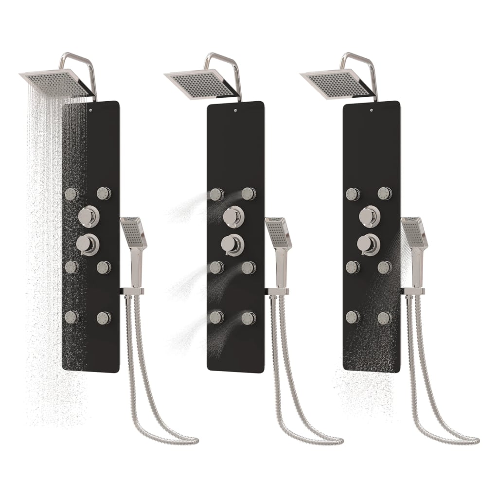 vidaXL Στήλη Ντους Υδρομασάζ Μαύρη 25 x 47,5 x 130 εκ. από Γυαλί