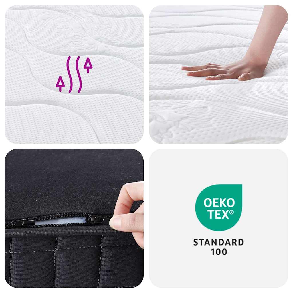 - Ενισχυμένη άνεση: Το στρώμα με ελατήρια έχει σχεδιαστεί με πολλαπλές στρώσεις, συμπεριλαμβάνοντας μια στρώση από αφρώδες υλικό, μια στρώση μαξιλαριού μόνωσης και μια στρώση με ελατήρια. Αυτός ο συνδυασμός παρέχει απαλή έως μεσαία αίσθηση και άνεση κατά τη διάρκεια του ύπνου σε όλες τις θέσεις. Επίσης, το στρώμα απορροφά αποτελεσματικά τον θόρυβο και τους κραδασμούς που προκαλούνται όταν στροφογυρίζετε, εξασφαλίζοντας έναν ήρεμο και ανενόχλητο ύπνο.