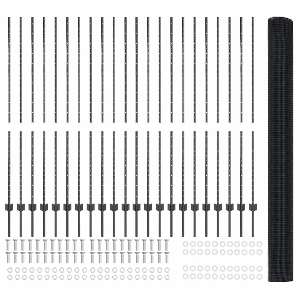 vidaXL Συγκολλητός φράκτης με 44 U Πόστες Γκρι 1.5x50 μ Ατσάλι
