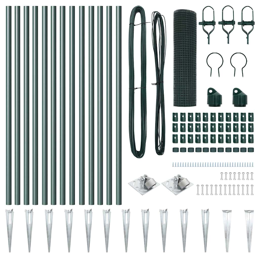 vidaXL Συγκολλητός Φράχτης με 13 Άγκυλες Πράσινος 0.8x25 μ Ατσάλι