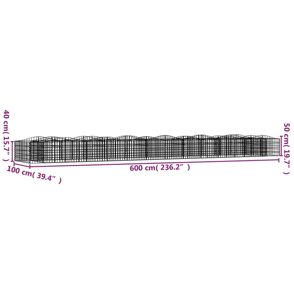 vidaXL Συρματοκιβώτιο Τοξωτό 600x100x50 εκ. από Γαλβανισμένο Σίδερο