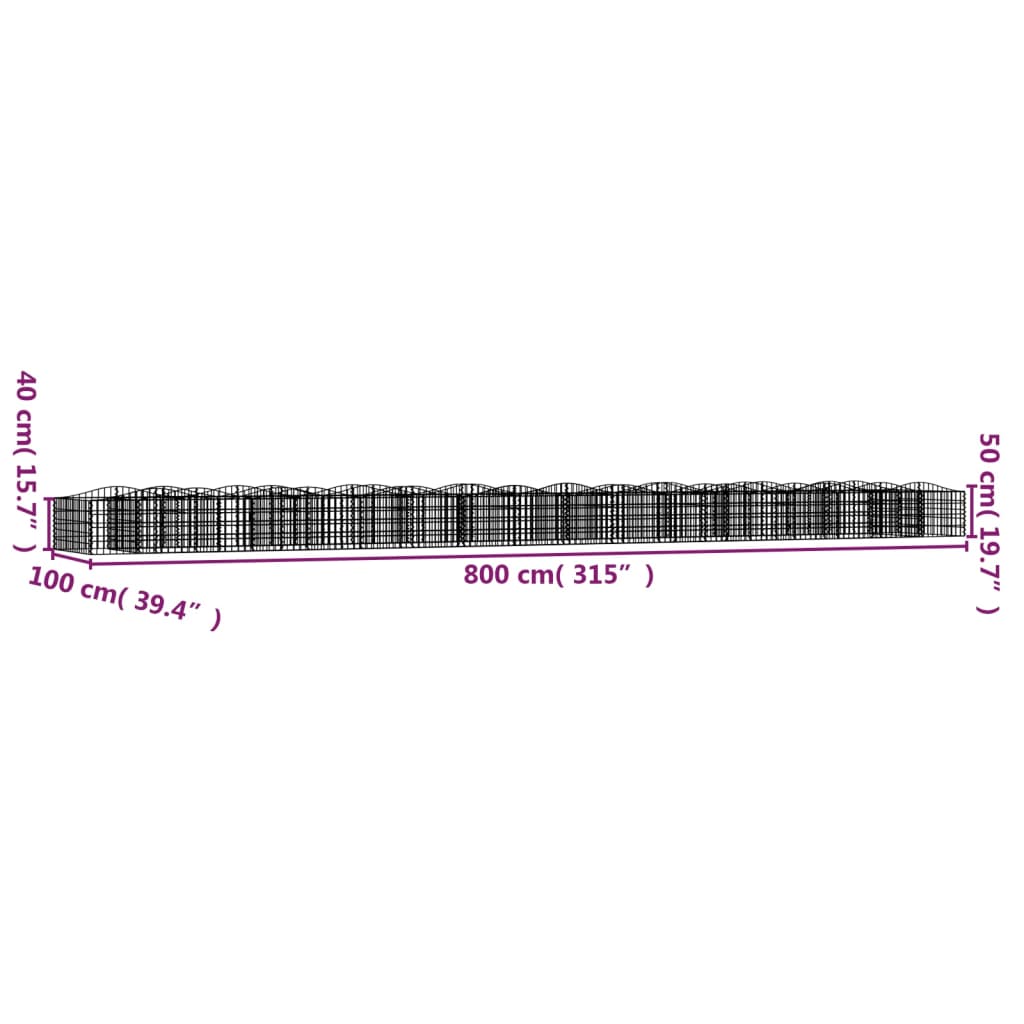 vidaXL Συρματοκιβώτιο Τοξωτό 800x100x50 εκ. από Γαλβανισμένο Σίδερο