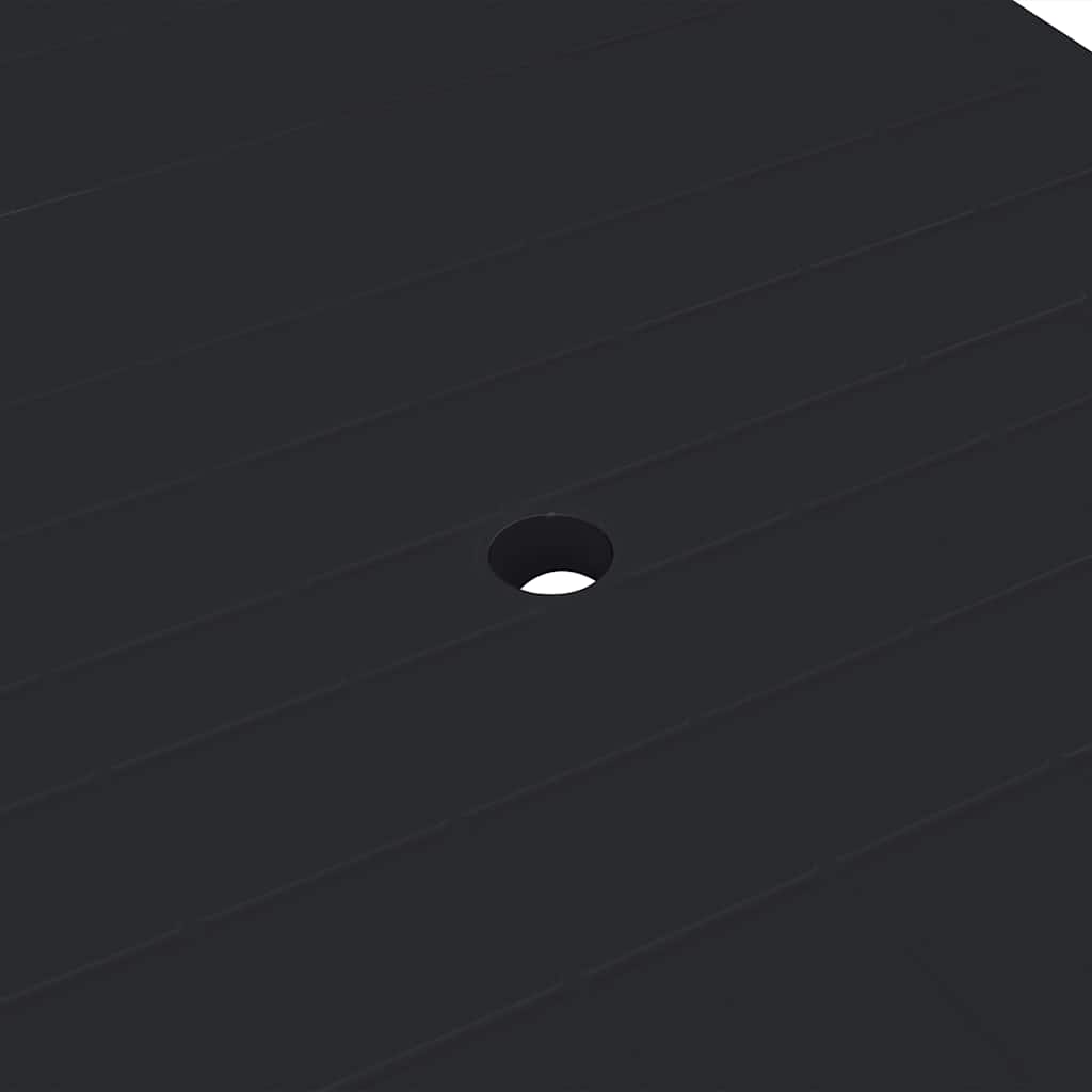 Η τραπεζαρία κήπου είναι κατασκευασμένη από συμπαγές πλαστικό, το οποίο την καθιστά ανθεκτική, εύκολη στο καθάρισμα και χαρίζει αντίσταση στις καιρικές συνθήκες. Επίσης, το τραπέζι διαθέτει οπή για ομπρέλα έτσι ώστε να τοποθετήσετε μια ομπρέλα και να δροσίζεστε στη σκιά. Το πλαστικό τραπέζι είναι επίσης ελαφρύ, γεγονός που καθιστά εύκολη τη μεταφορά του.