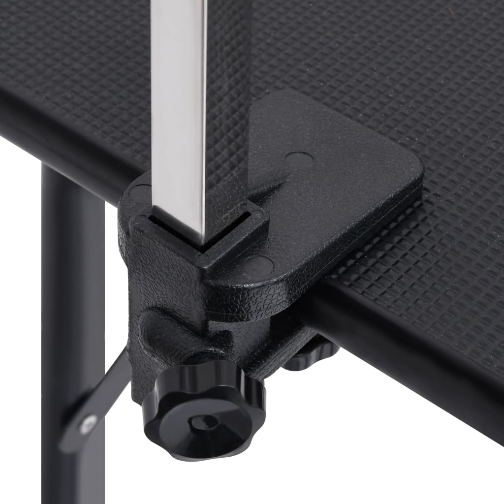 Αυτό το τραπέζι καλλωπισμού κατοικίδιων υποστηρίζεται από ατσάλινα πόδια, που το καθιστούν σταθερό και στιβαρό. Η μεγάλη αντιολισθητική επιφάνεια του τραπεζιού δημιουργεί μια άνετη επιφάνεια για να στέκονται τα κατοικίδιά σας. Επιπλέον, ο βραχίονας περιποίησης από ανοξείδωτο ατσάλι διαθέτει δυνατότητα ρύθμισης καθ' ύψος. Έτσι, μπορείτε να τον προσαρμόσετε στο ιδανικό ύψος, για εσάς και το κατοικίδιό σας. Το πτυσσόμενο τραπέζι είναι κατάλληλο για όσους παρέχουν επαγγελματικές υπηρεσίες καλλωπισμού σκύλων, αλλά και για οικιακή χρήση, ενώ είναι εύκολο να αποθηκευτεί. Υπάρχει ένα καλάθι κάτω από την επιφάνεια του τραπεζιού, το οποίο μπορεί να χρησιμοποιηθεί για την αποθήκευση καθημερινών ειδών των κατοικίδιών σας. Επιπλέον, οι στρογγυλεμένες γωνίες αποτρέπουν τυχόν τραυματισμούς.