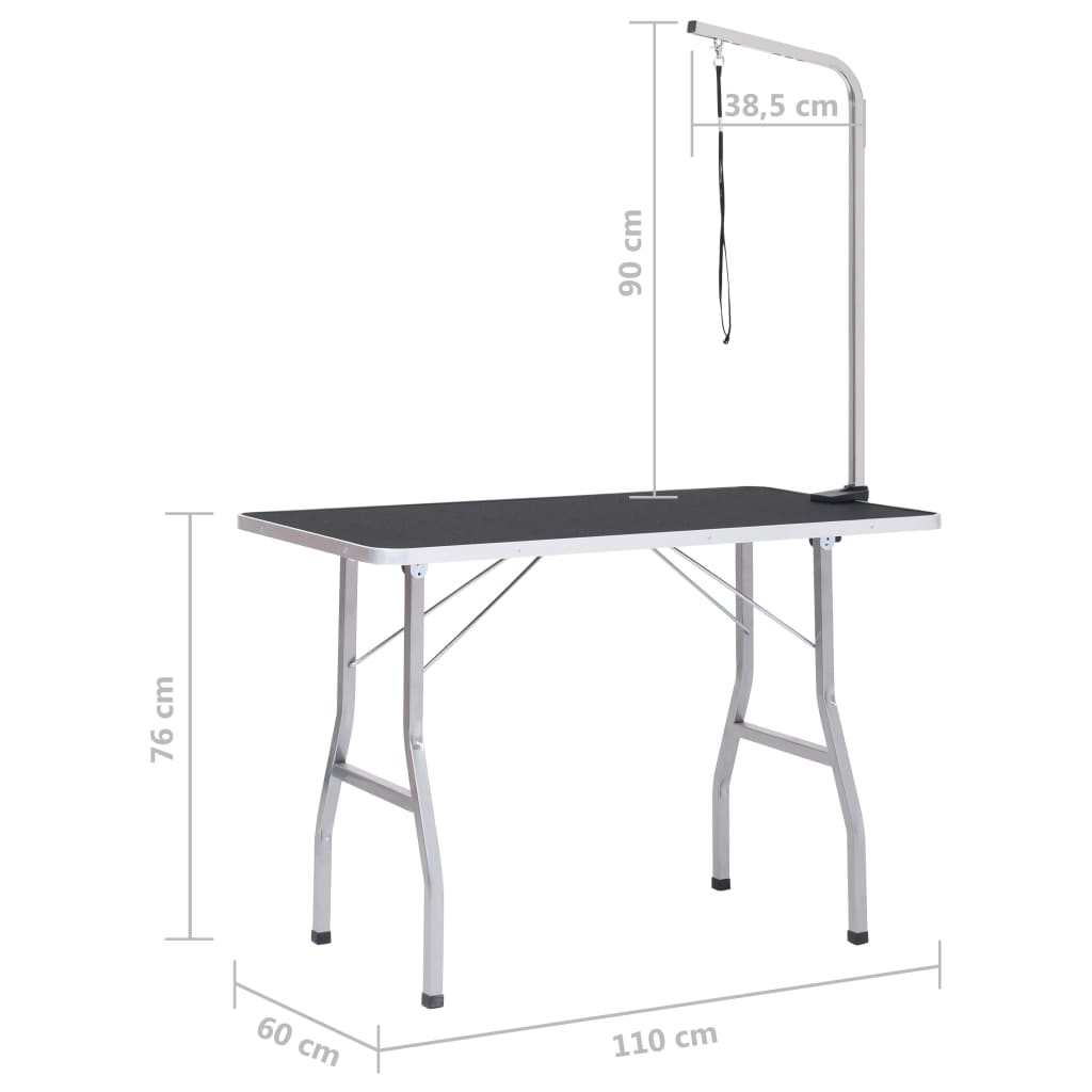 Αυτό το τραπέζι καλλωπισμού κατοικίδιων υποστηρίζεται από ατσάλινα πόδια, που το καθιστούν σταθερό και στιβαρό. Η μεγάλη αντιολισθητική επιφάνεια του τραπεζιού δημιουργεί μια άνετη επιφάνεια για να στέκονται τα κατοικίδιά σας. Επιπλέον, ο βραχίονας περιποίησης από ανοξείδωτο ατσάλι διαθέτει δυνατότητα ρύθμισης καθ' ύψος. Έτσι, μπορείτε να τον προσαρμόσετε στο ιδανικό ύψος, για εσάς και το κατοικίδιό σας. Το πτυσσόμενο τραπέζι είναι κατάλληλο για όσους παρέχουν επαγγελματικές υπηρεσίες καλλωπισμού σκύλων, αλλά και για οικιακή χρήση, ενώ είναι εύκολο να αποθηκευτεί. Επιπλέον, οι στρογγυλεμένες γωνίες αποτρέπουν τυχόν τραυματισμούς.