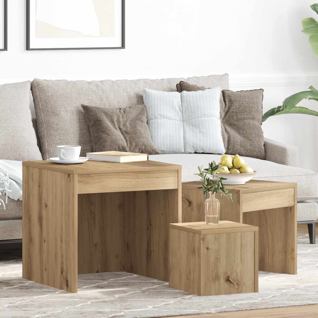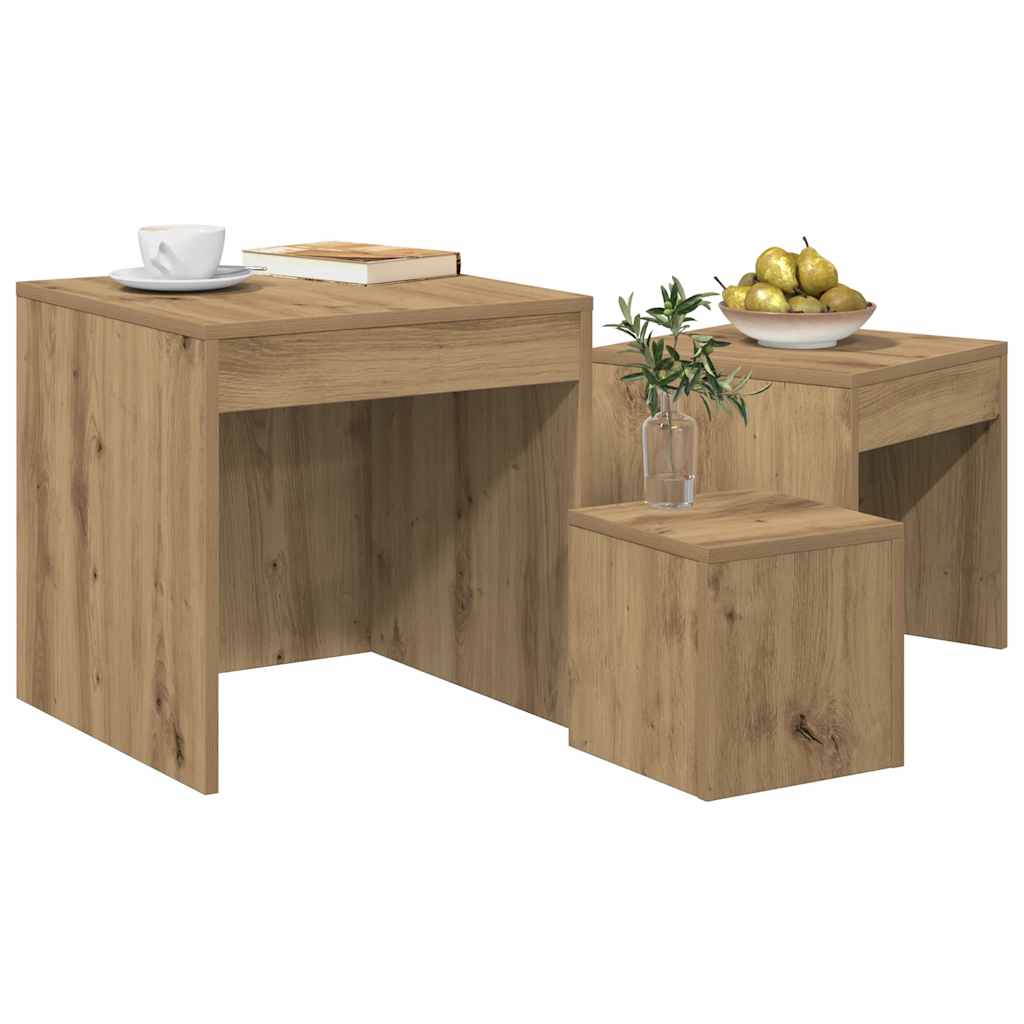 vidaXL Τραπεζάκια Ζιγκόν 3 τεμ. Αρτισιανή Δρυς από Επεξεργασμένο Ξύλο