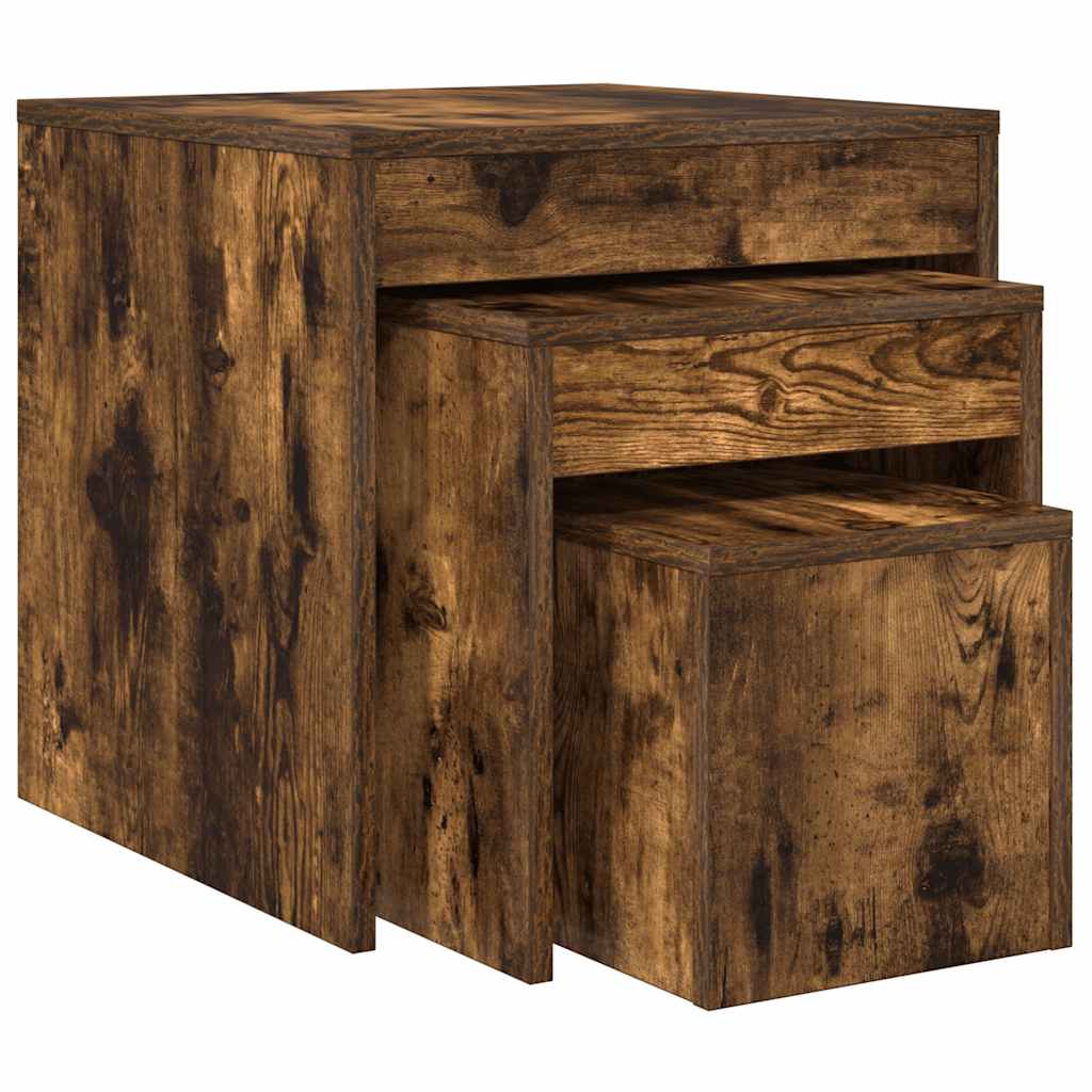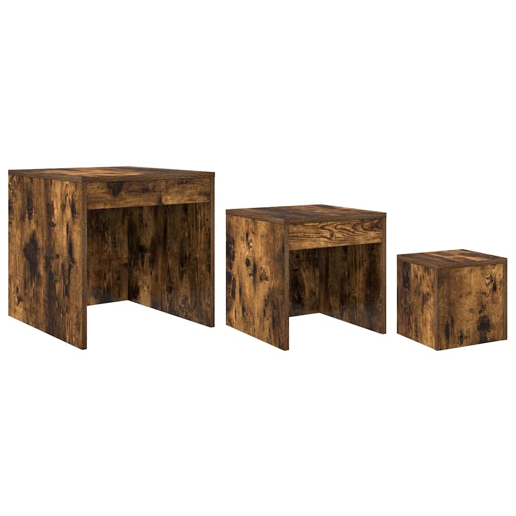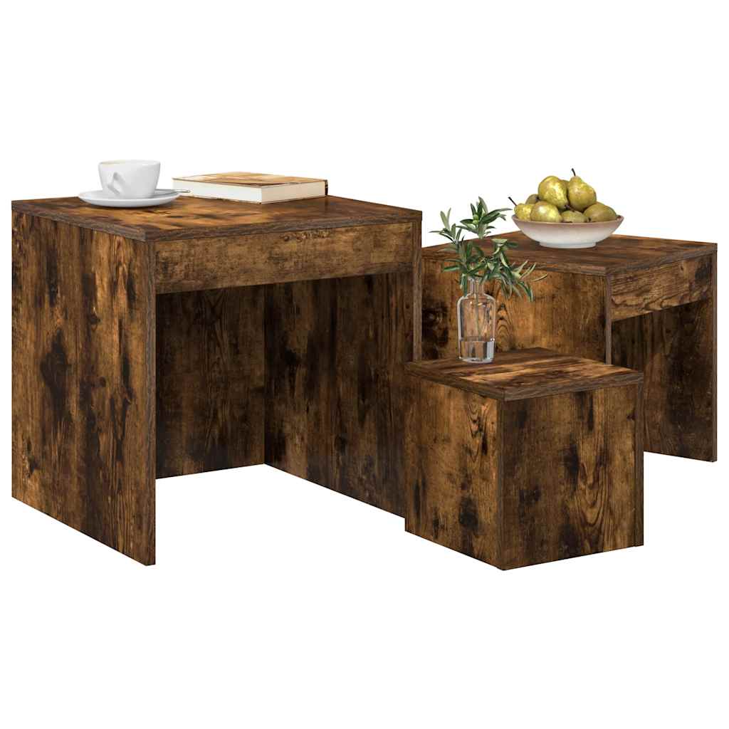 vidaXL Τραπεζάκια Ζιγκόν 3 τεμ. Καπνιστή Δρυς από Επεξεργασμένο Ξύλο