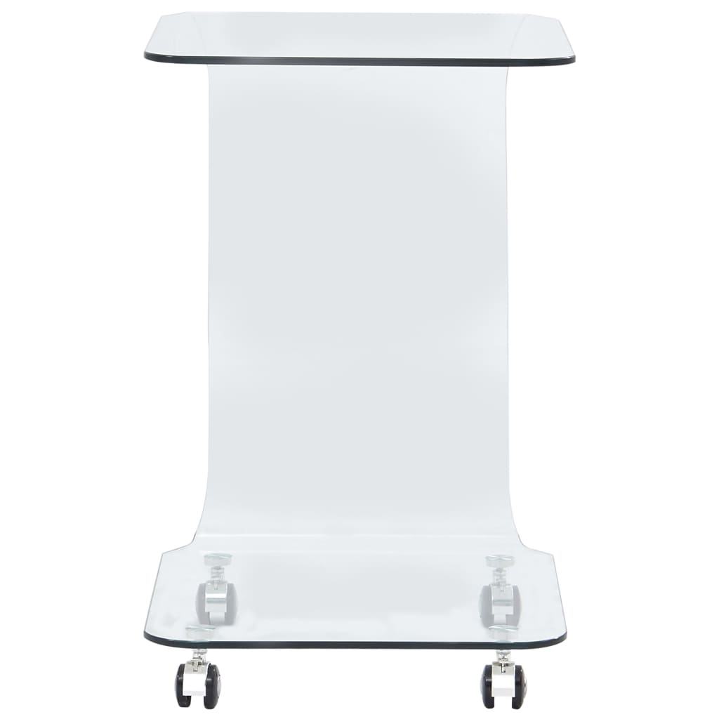 Το τραπέζι καναπέ κατασκευάζεται από ψημένο γυαλί ασφαλείας, το οποίο είναι ασφαλέστερο και ισχυρότερο από το συνηθισμένο γυαλί. Χάρις στους 4 τροχούς, το βοηθητικό τραπέζι μας μετακινείται εύκολα. Ως αποτέλεσμα, είναι ανθεκτικό και στιβαρό. Το γυάλινο τραπεζάκι καφέ καθαρίζεται εύκολα με ένα νωπό πανί.