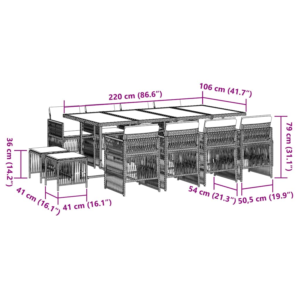 vidaXL Τραπεζαρία Κήπου 13 Τεμαχίων Γκρι Συνθετικό Ρατάν με Μαξιλάρια