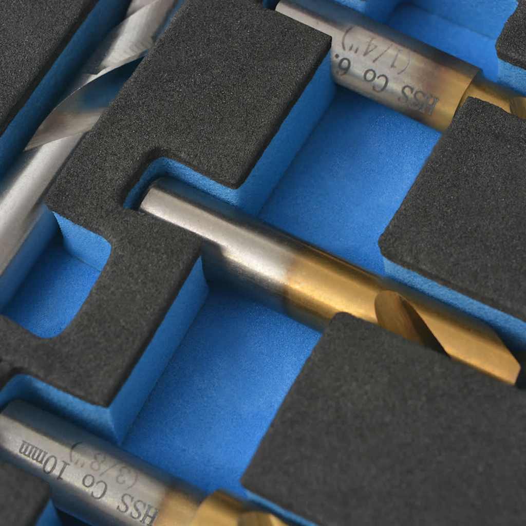 Το σετ τρυπανιών έχει κατασκευαστεί από υψηλής ποιότητας ατσάλι υψηλής ταχύτητας (HSS), καθιστώντας το ιδανικό για χρήση σε σκληρότερα μέταλλα, όπως ο ανοξείδωτος χάλυβας. Τα τρυπάνια παραδίδονται σε στιβαρή θήκη για εύκολη αποθήκευση και μεταφορά.