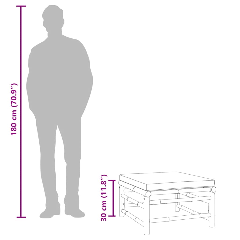 vidaXL Υποπόδιο Κήπου από Μπαμπού με Ανοιχτό Γκρι Μαξιλάρι