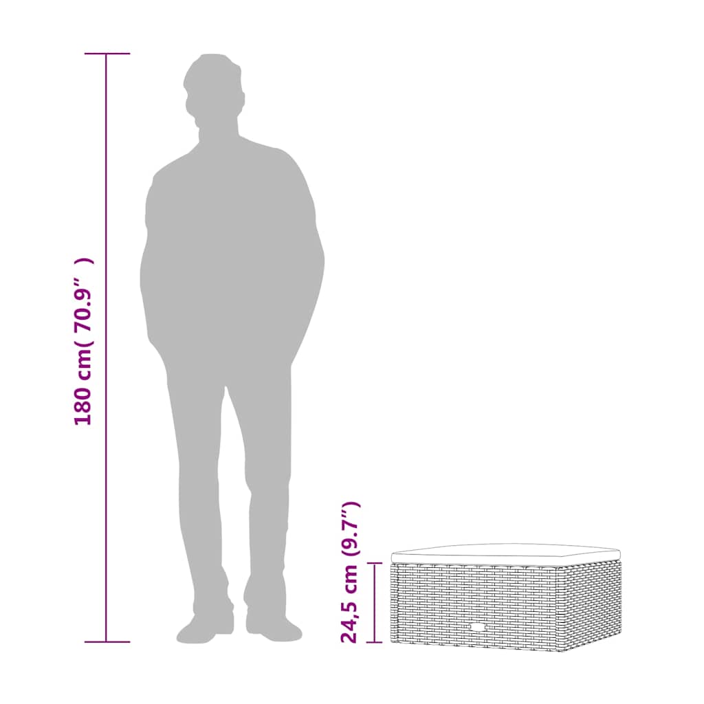 vidaXL Υποπόδιο Κήπου Μαύρο από Συνθετικό Ρατάν με Μαξιλάρι
