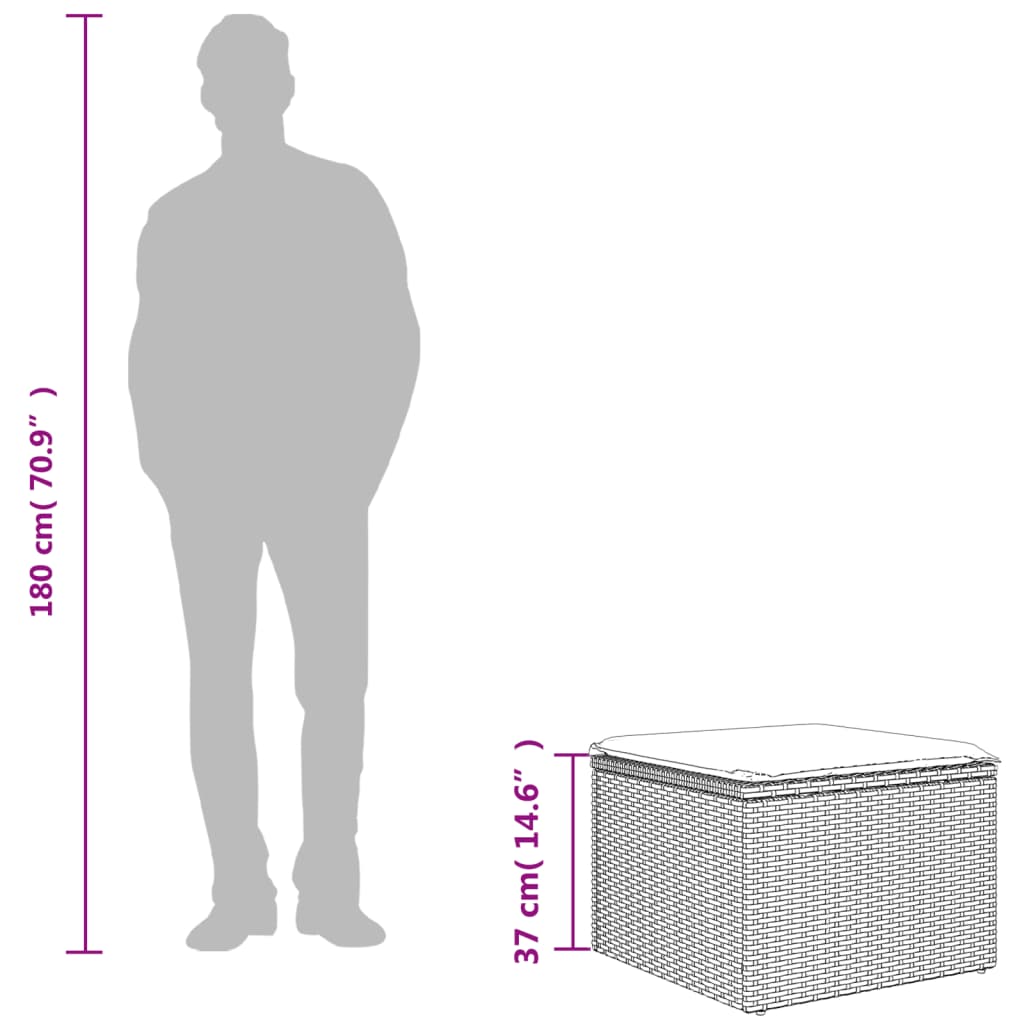 vidaXL Υποπόδιο Κήπου Μπεζ 55x55x37 εκ. Συνθετικό Ρατάν με Μαξιλάρι