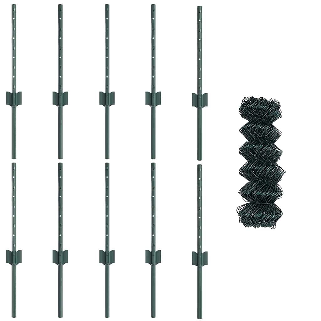 vidaXL Φράκτης αλυσίδας με 10 U Posts Πράσινος 0.4x10 m Χάλυβας