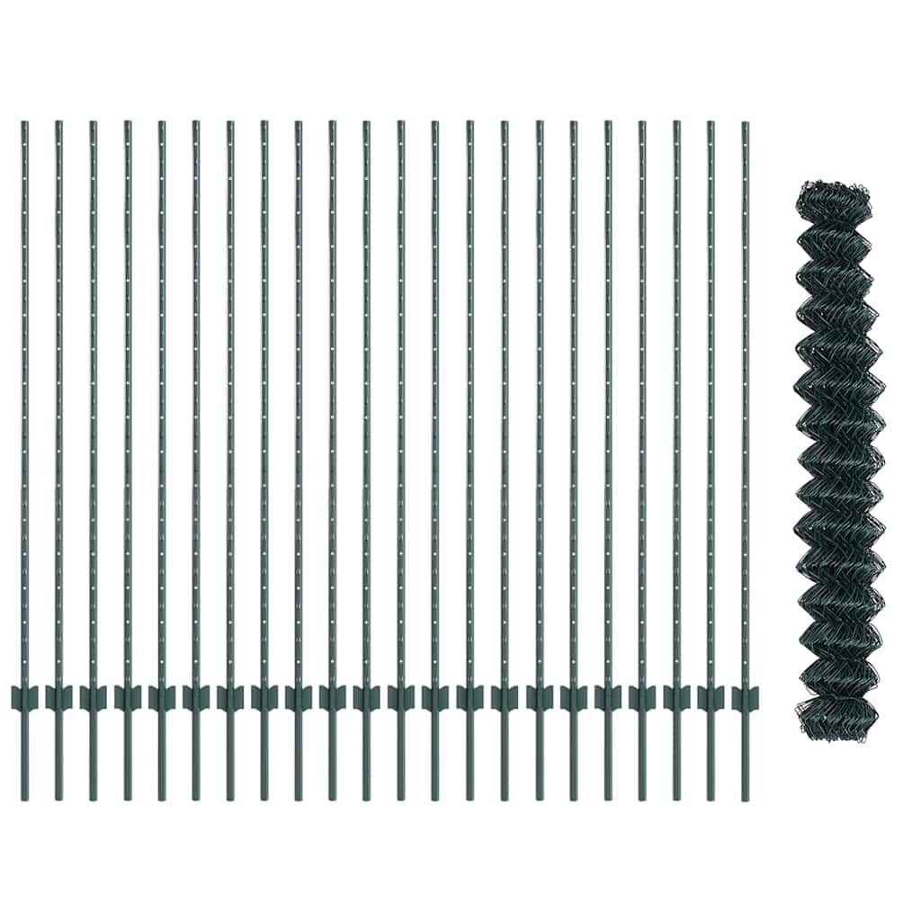 vidaXL Φράκτης Αλύσου με 22 U Posts Πράσινο 1.6x25 m Ατσάλι