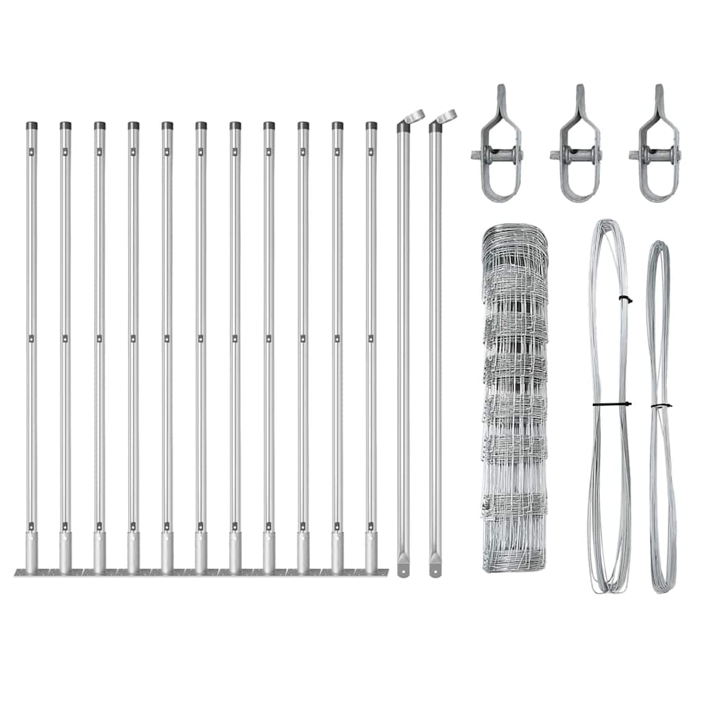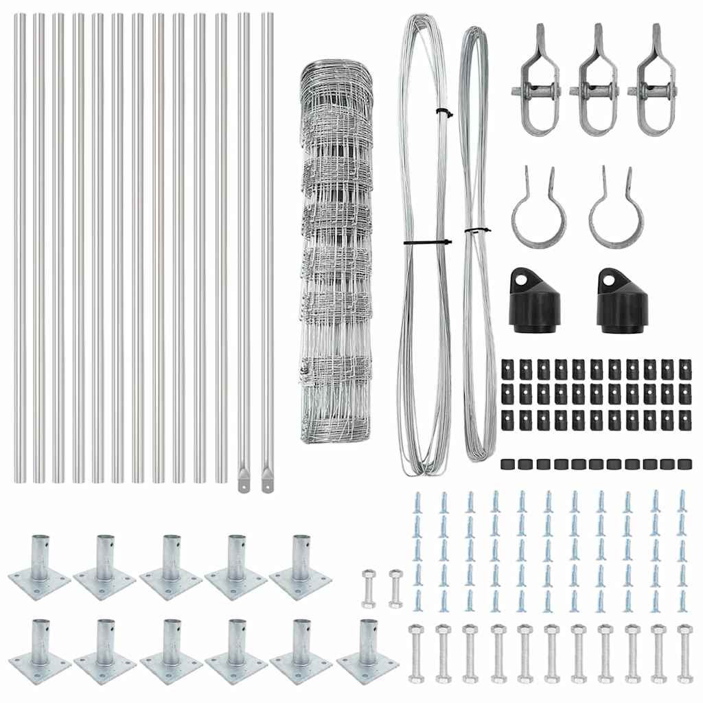 Αυτός ο φράχτης vidaXL Αγρού είναι φτιαγμένος με σκληρό γαλβανισμένο ατσάλι, ιδανικός για να κρατήσεις τα ζώα σου ασφαλή. Η λαμπερή ασημί εμφάνιση και η ανθεκτική του κατασκευή προστατεύουν και αναβαθμίζουν τον εξωτερικό σου χώρο, κάνοντάς τον τέλεια επιλογή για σπίτια, φάρμες ή κήπους.