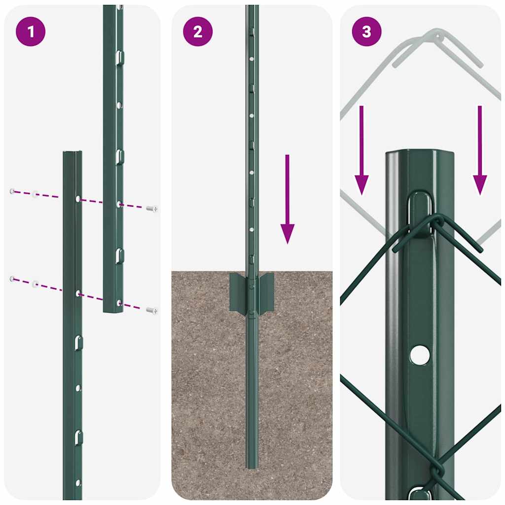 vidaXL Φράχτης αλυσίδας με 10 ποστάρια Πράσινος 1.6x10 μ Ατσάλι