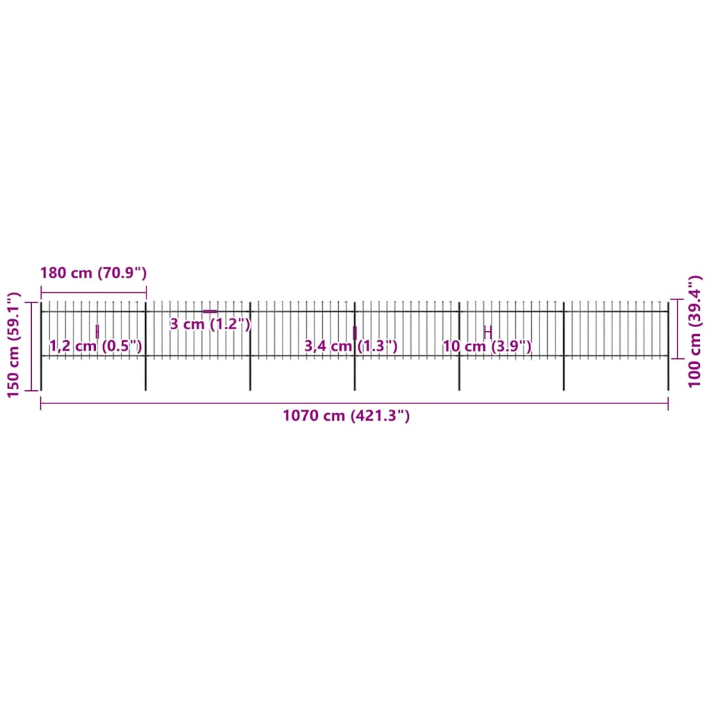 vidaXL Φράχτης Κήπου με Κορυφή Δόρυ από Ατσάλι, Μαύρος 1070 x 100 εκ.