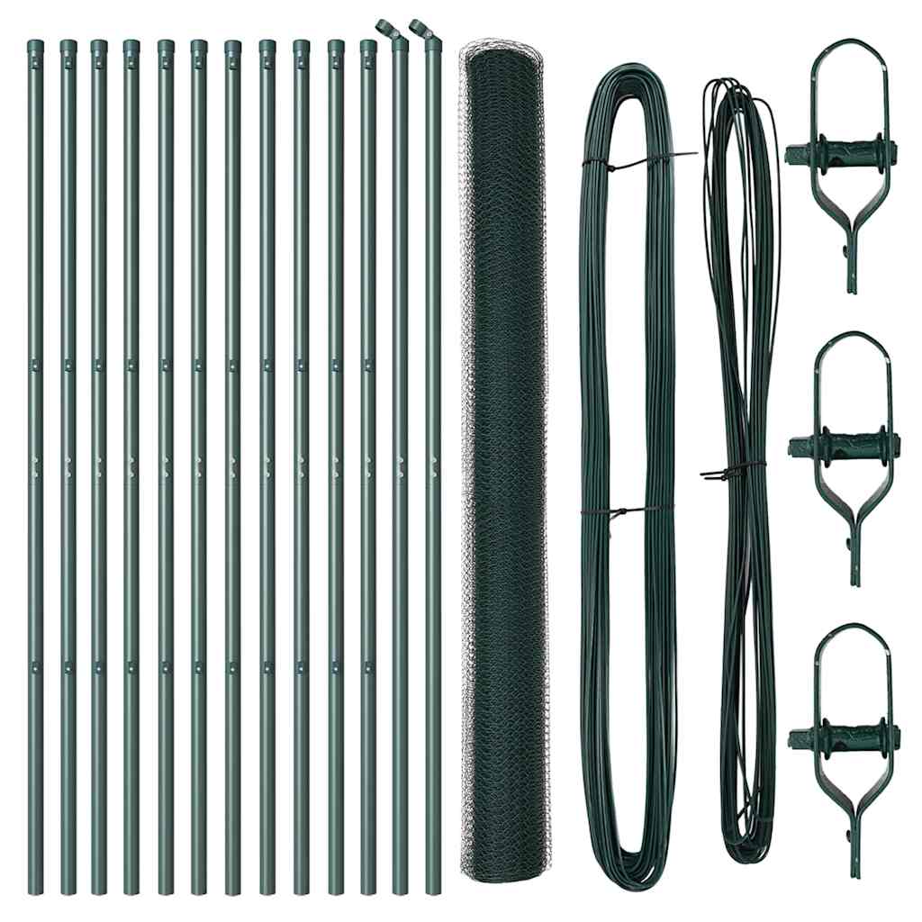vidaXL Φράχτης με Στήλες. Πράσινο 1.5 x 25 m Ατσάλι με επικάλυψη PVC
